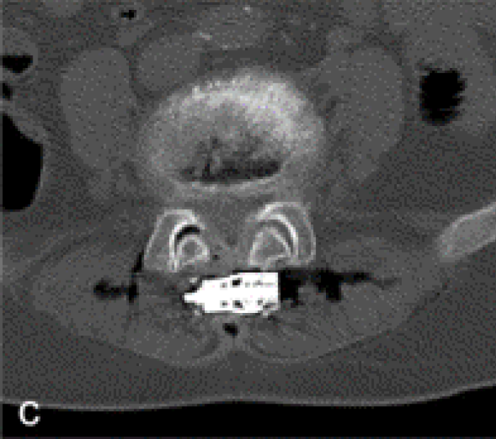 a:L4/L5の椎間板ヘルニアと黄色靭帯肥厚を伴う脊柱管狭窄症のCT画像